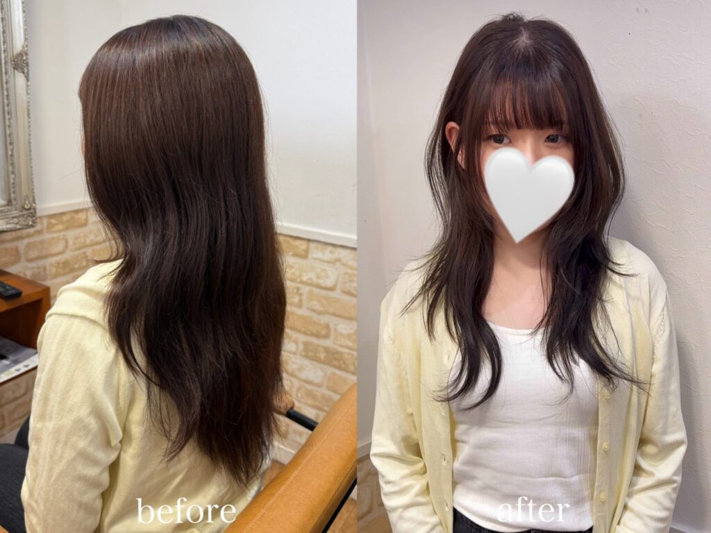 伸びてきたのでその分カット、毛量調整をして韓国ヘアに