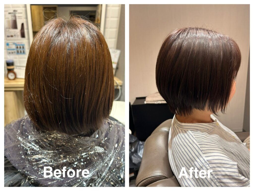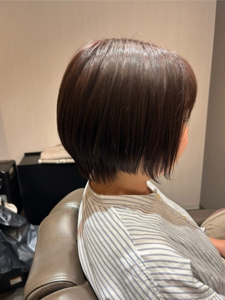 本日のお客様は、後頭部に丸みのある前下りのショートボブにしたい。