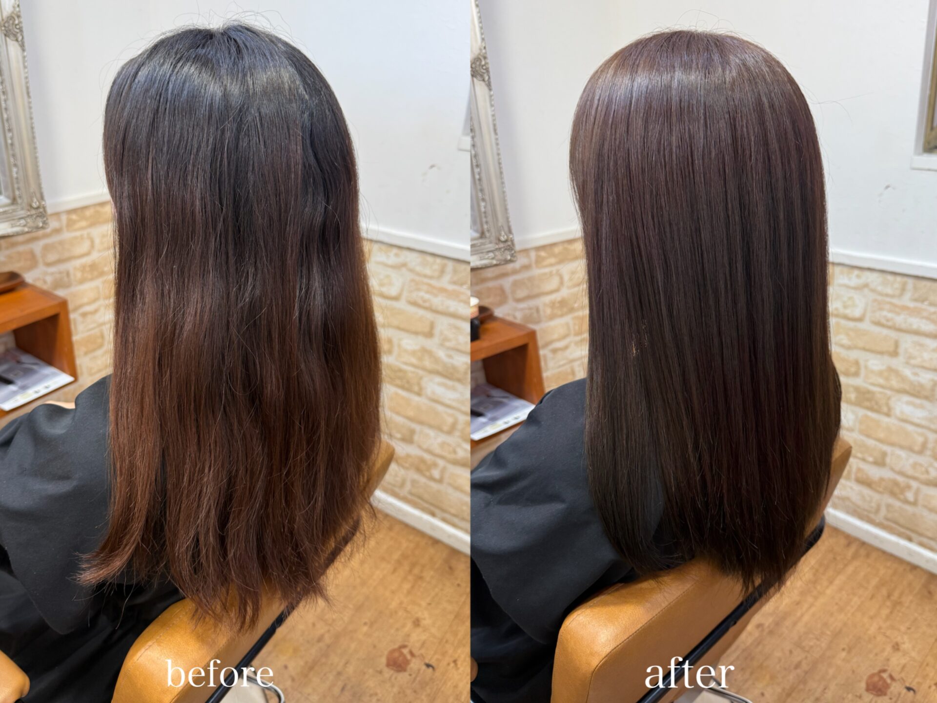 TOP > 施術事例 > オレンジ味を抑えたラベンダーブラウン
