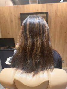 ブリーチやアイロンの熱焼けダメージが酷く、