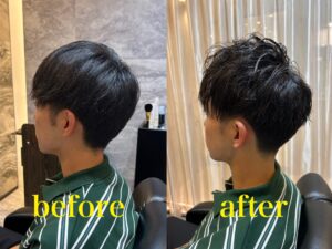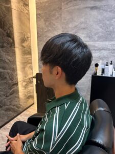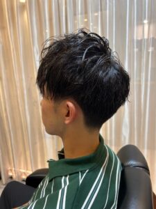 強すぎない動きとトップのボリュームがプラスされ、整髪料をつけてしっかり動かす