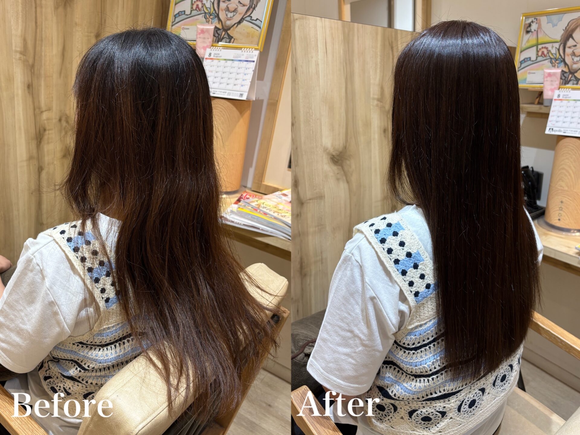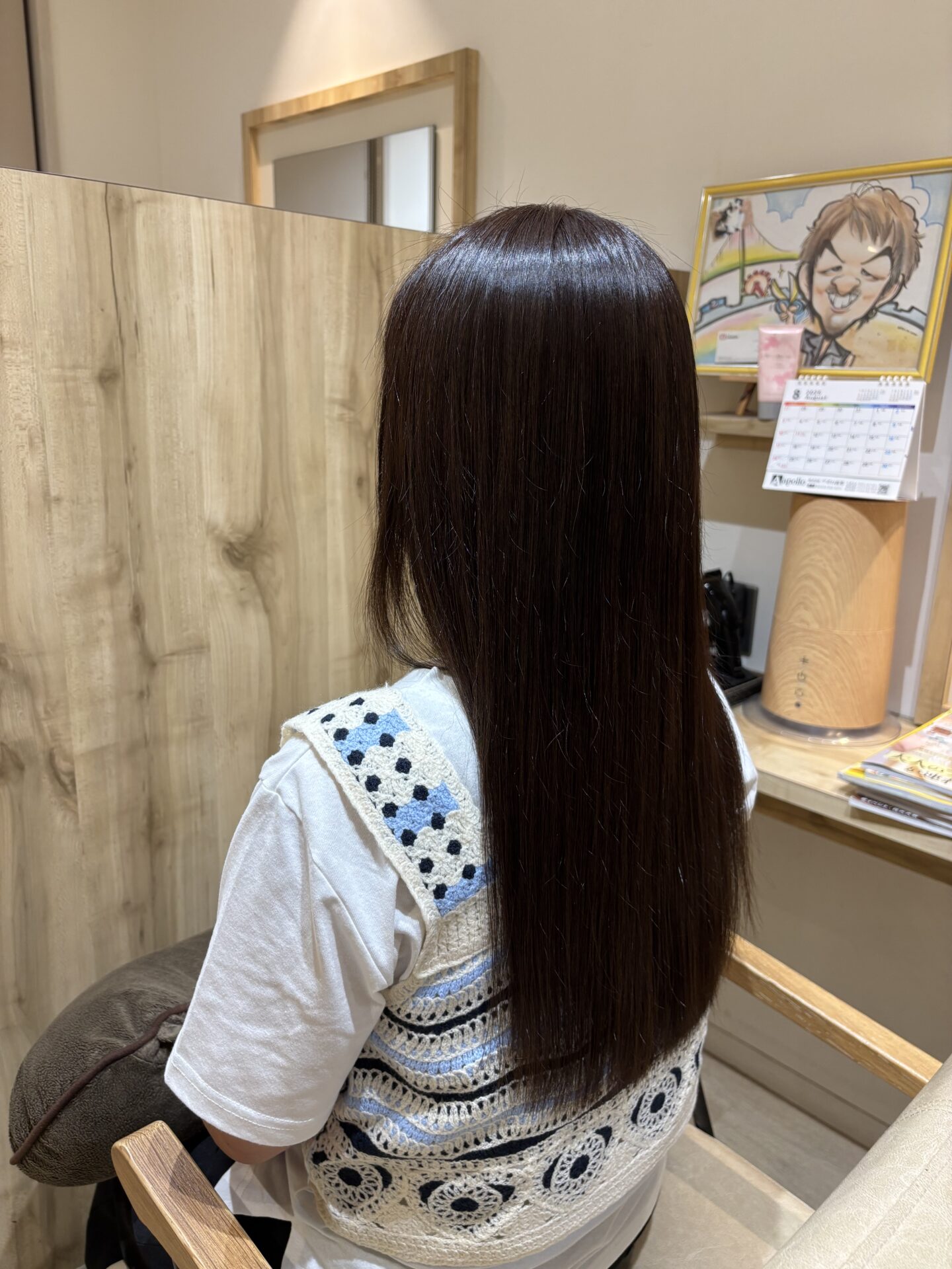 ストレートをしたことで全体的なツヤ感がUPして乾かすだけでお手入れが簡単になりました。