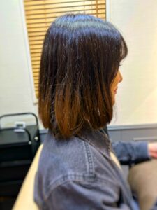 元が重みを感じるボブだったので、すっきりと見える長さに揃えて、印象の違うシルエットにカットしました。