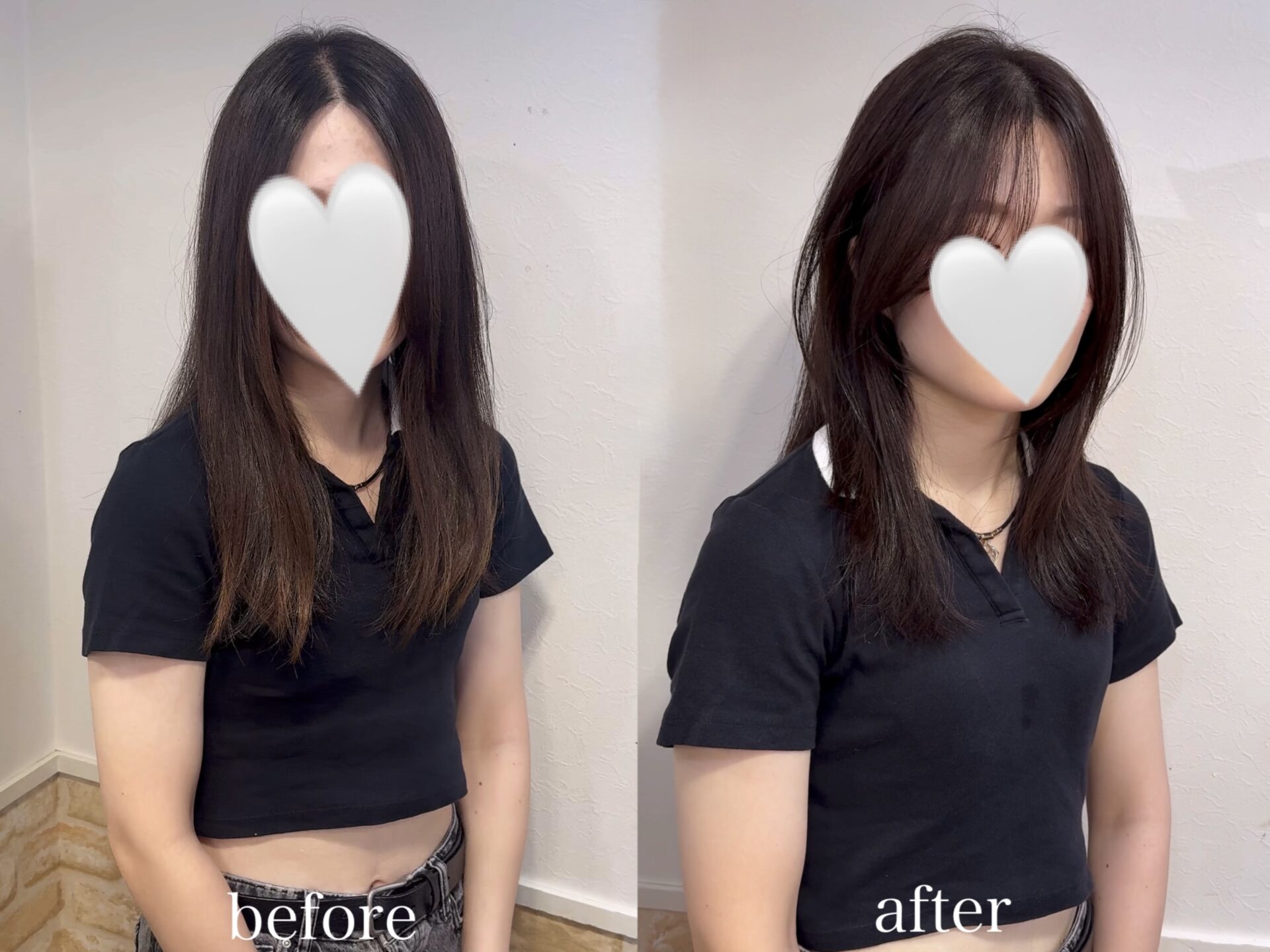 初めてのレイヤーを入れて顔まわりの重たい雰囲気を動きのある柔らかい雰囲気に!