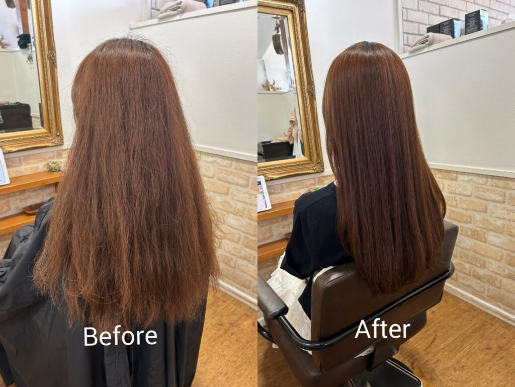 久しぶりの縮毛矯正で、サラサラと艶感がアップしました。