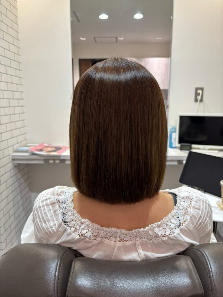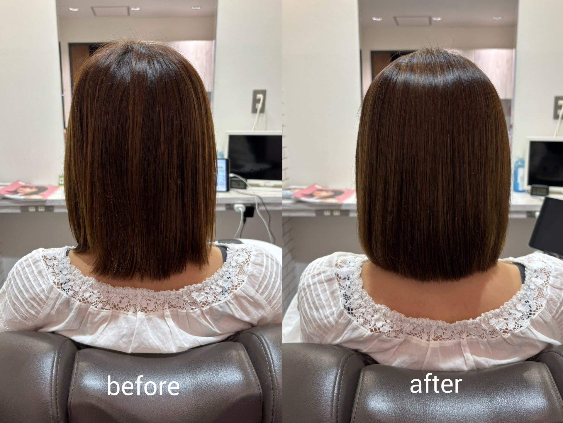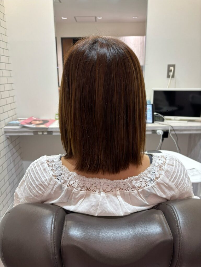 ケアの意識が高いお客様で毎月ヘアエステで頭皮から髪の毛までトリートメントは欠かさず行っております。