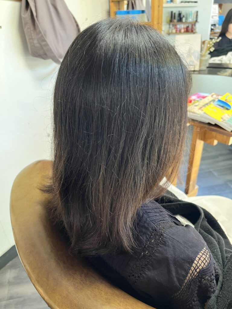 トップがペタンとしやすいので、バランスをみながらカットし、次回までになるべく持つようにしました。