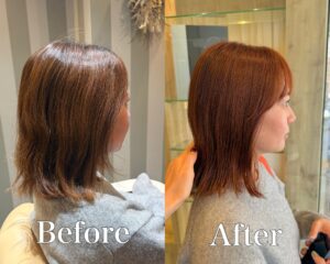 夏に髪の毛を少し明るめにしてダメージでパサつく、夏の紫外線ダメージでパサつく、寒くなって乾燥でパサつく。などそういったパサつきが目立つこの季節に艶っぽく見せれる暖色は本当におすすめです。
