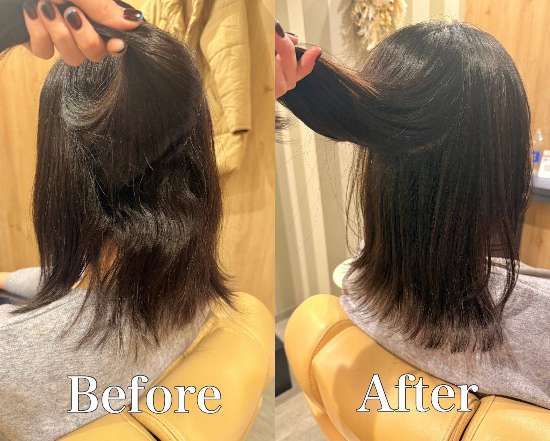 このお悩みを解消しながらも、ダメージを最小限で縮毛矯正をしました!