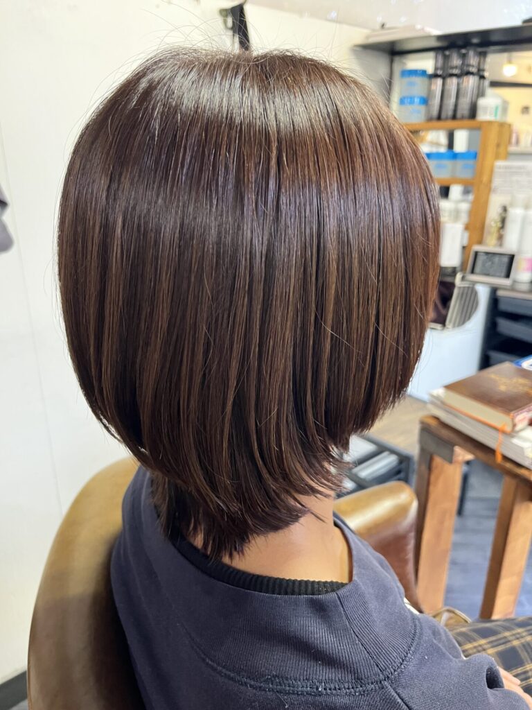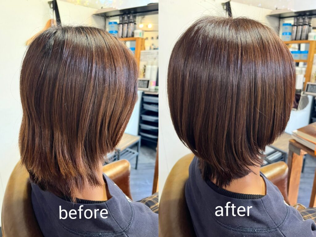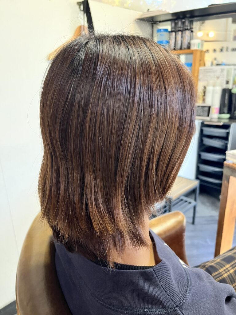 前回のウルフから伸びてまとまりにくくなってきたので、形を整えて襟足はハネても首に沿ってもどちらでもいいようにしたい。