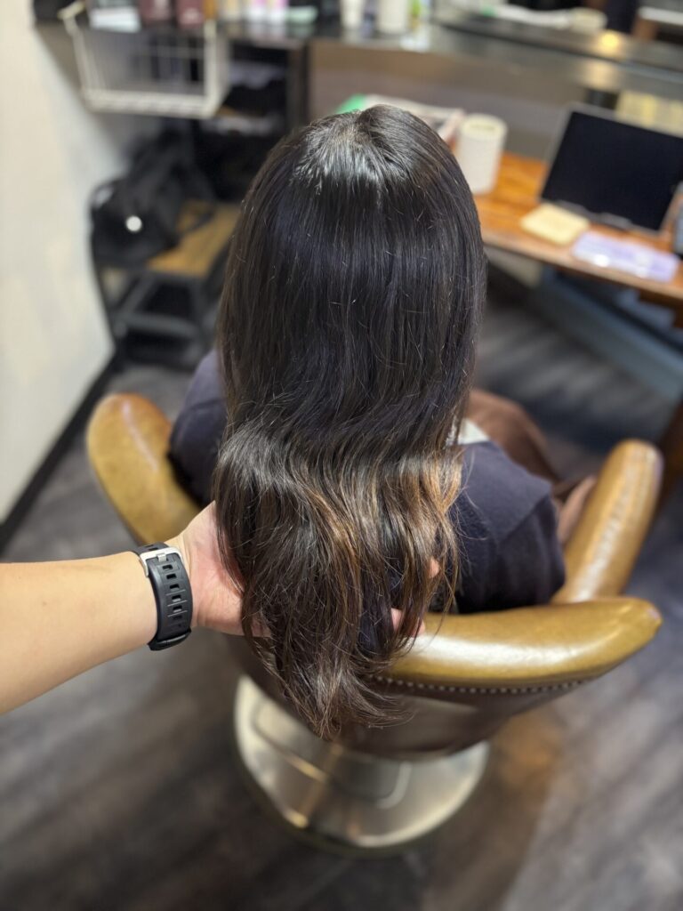 根本から毛先までしっかりボリュームダウンできましたね。