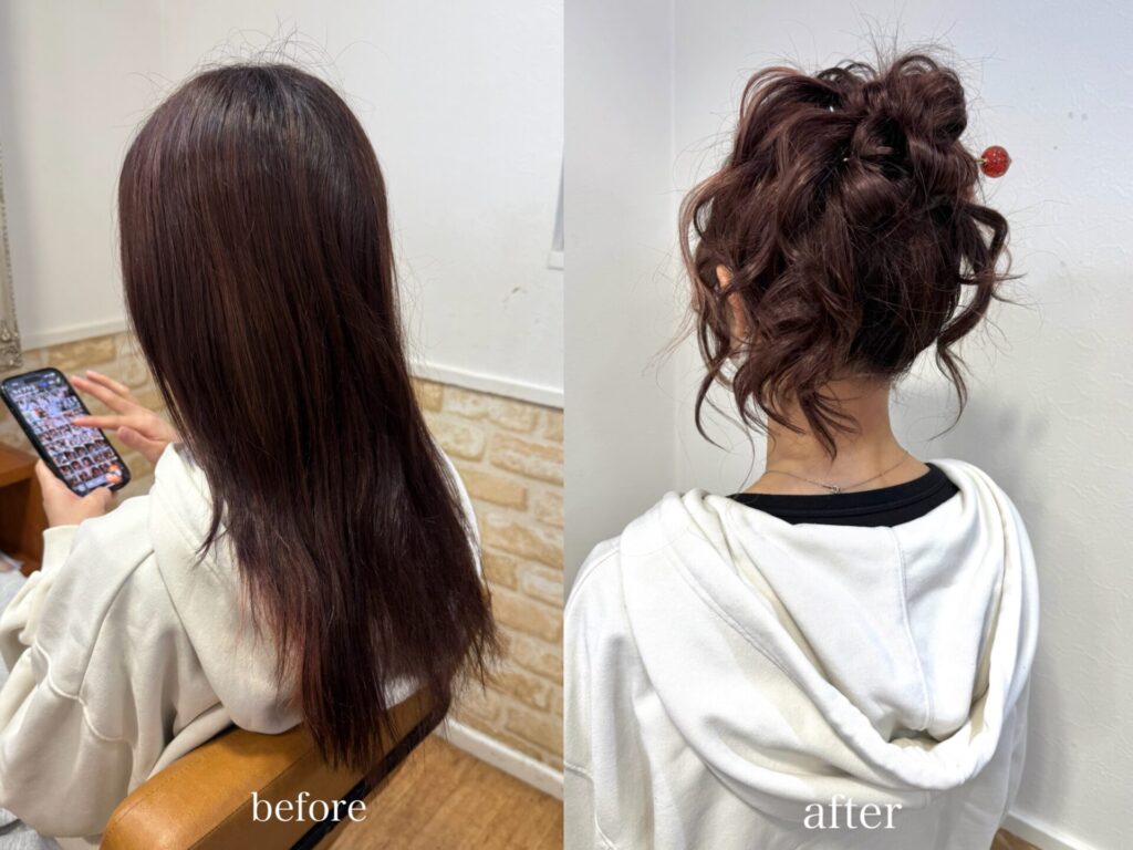 360°どこから見ても可愛いヘアになるようにセットしてます!