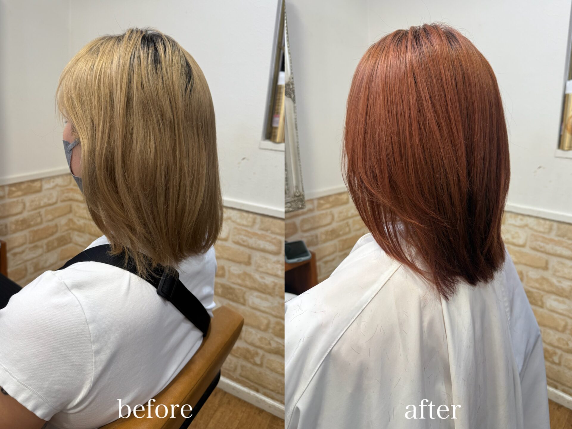 TOP > 施術事例 > オレンジブラウンで派手すぎない暖色カラー