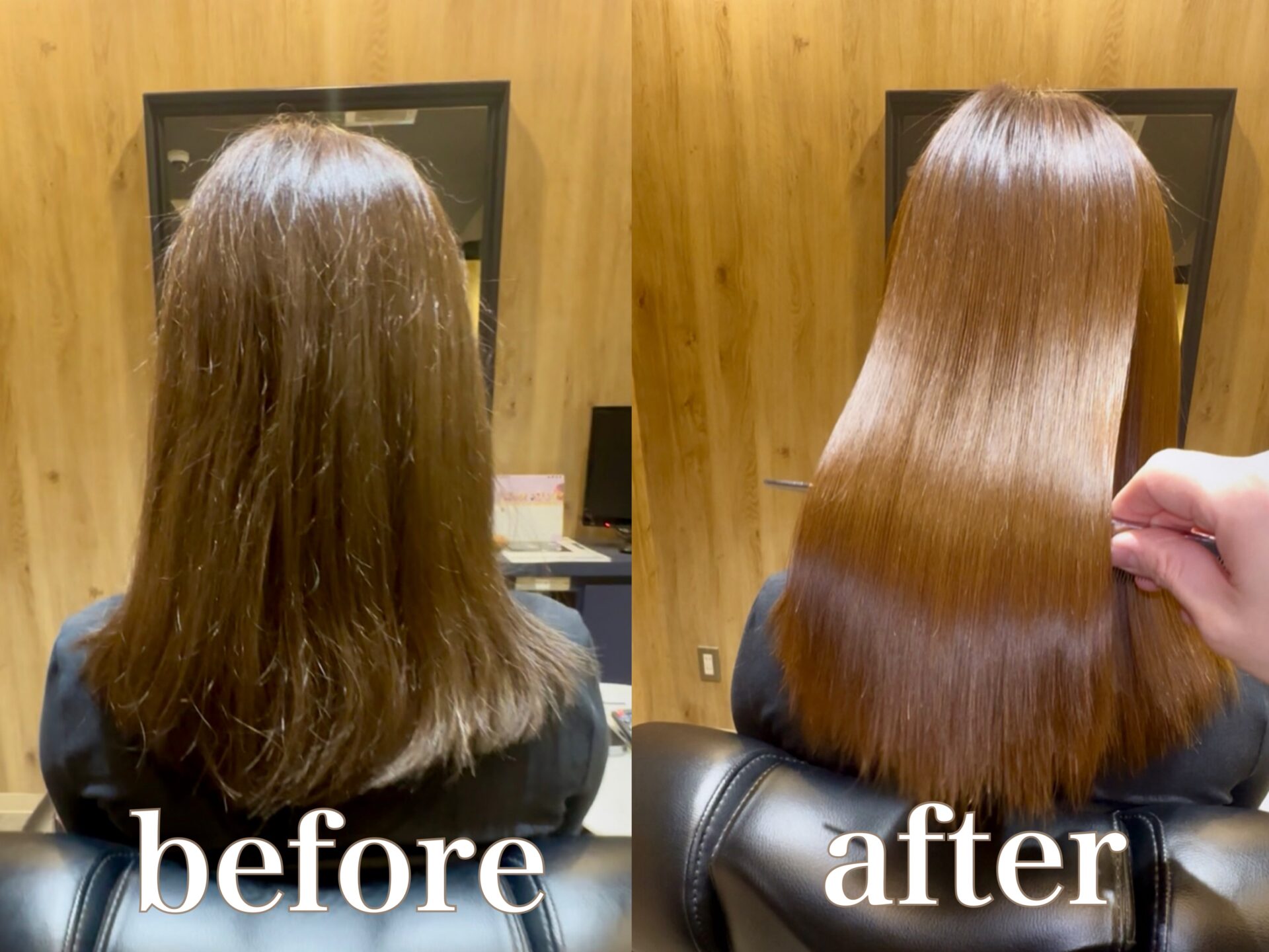 今回のお客様は、カラーの繰り返しとアイロンによる熱焼けによっての広がりが気になるとの事でした!