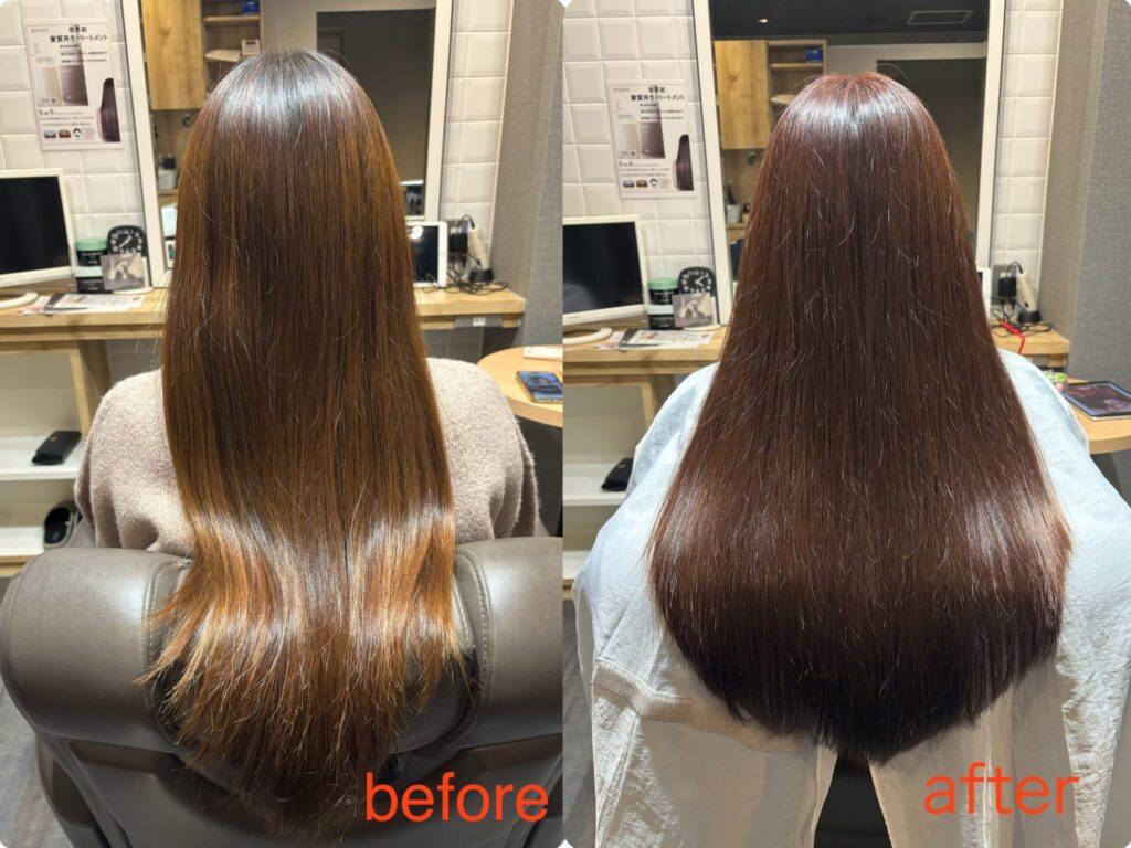 今回は、「カットカラー髪質再生トリートメントコース」のお客様です。