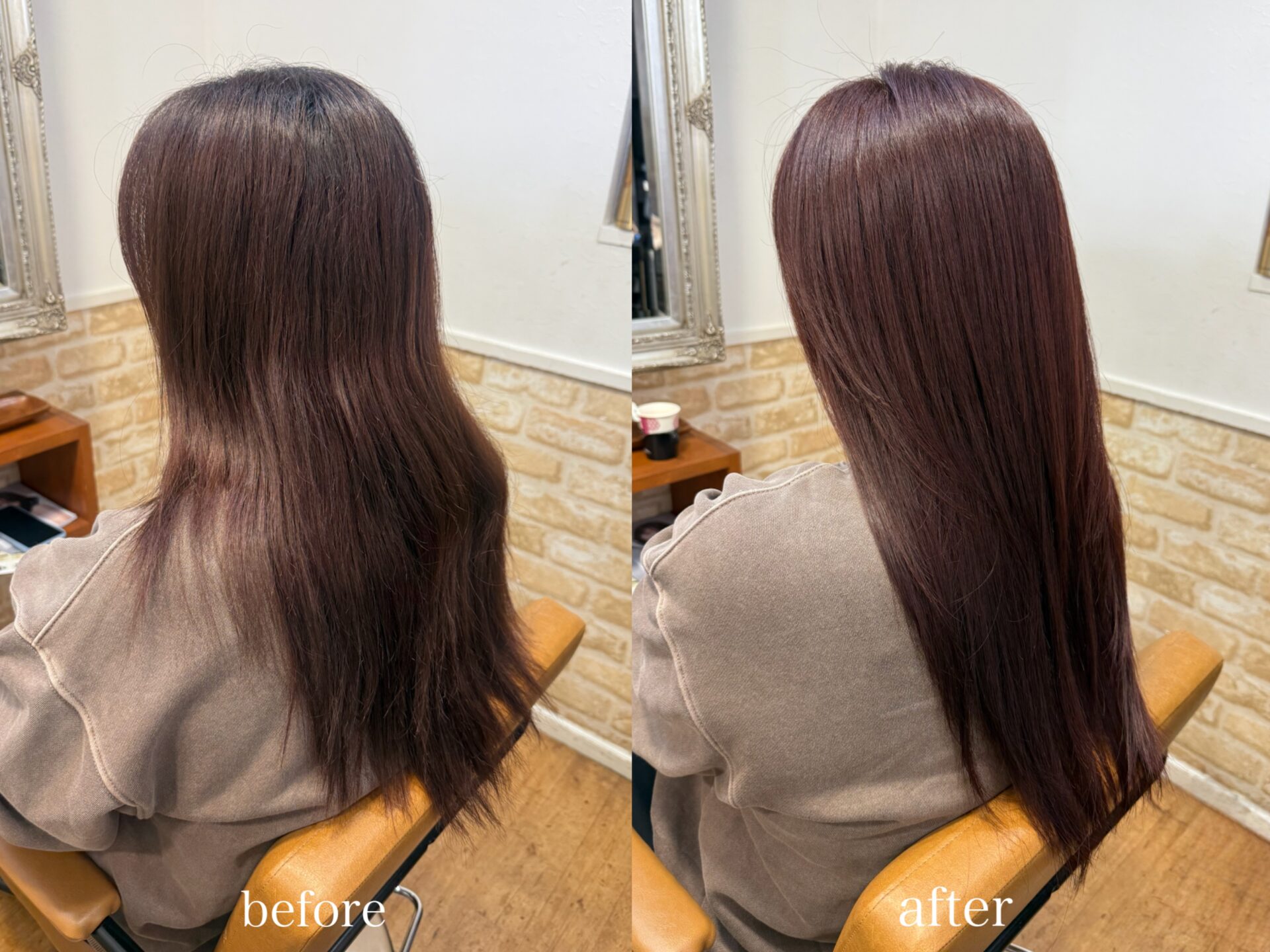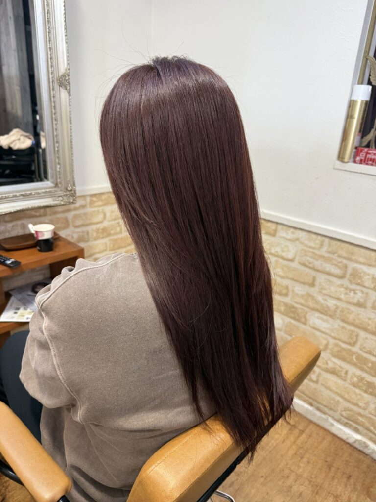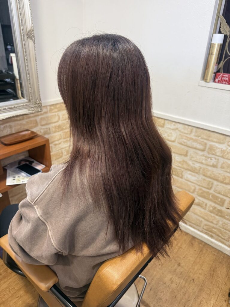 続けているのでブリーチ無しでもピンク系が入りやすくなっていてきれいなピンクブラウンに!