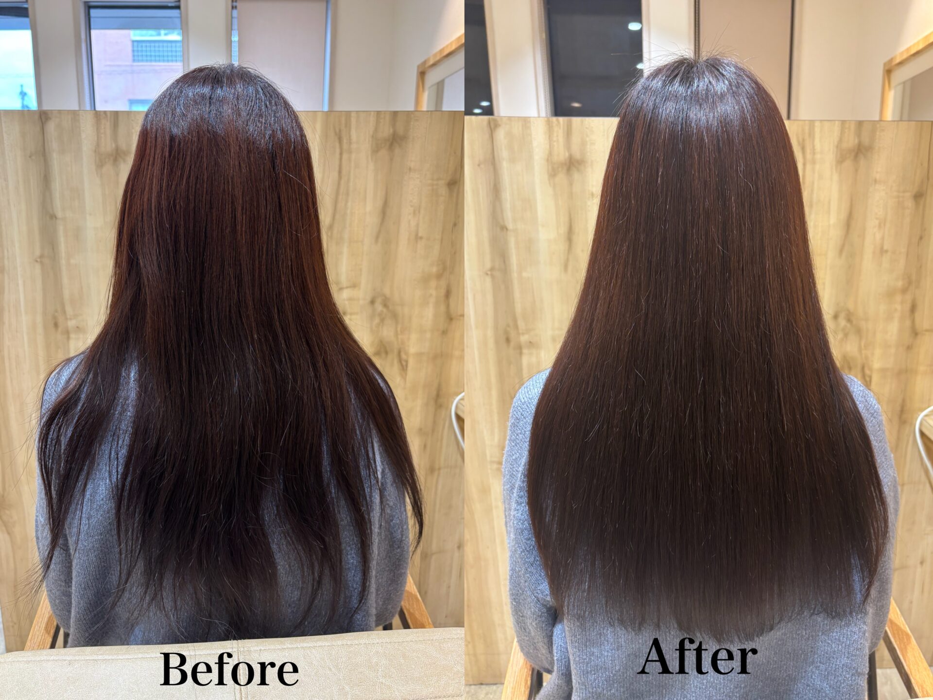 ストレートになる事で朝のお手入れも楽になり忙しい方にはおススメのスタイルです
