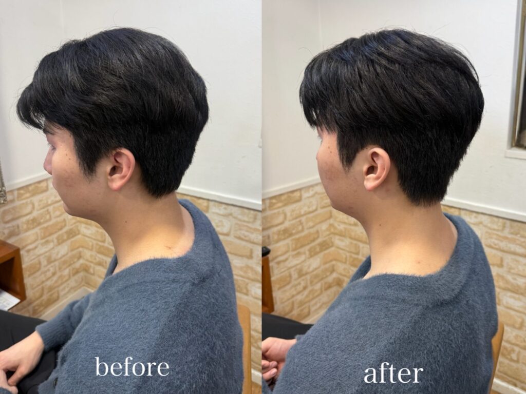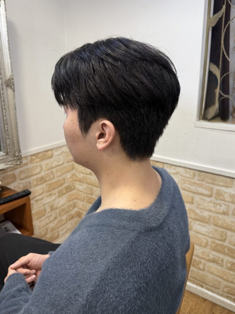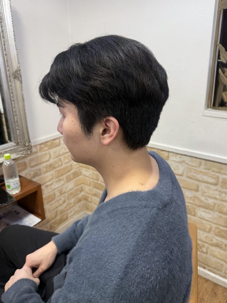 ハチ骨下を中心にダウンパーマをすることで刈り上げずおさえられ、韓国人のようなメンズスタイルにできます!