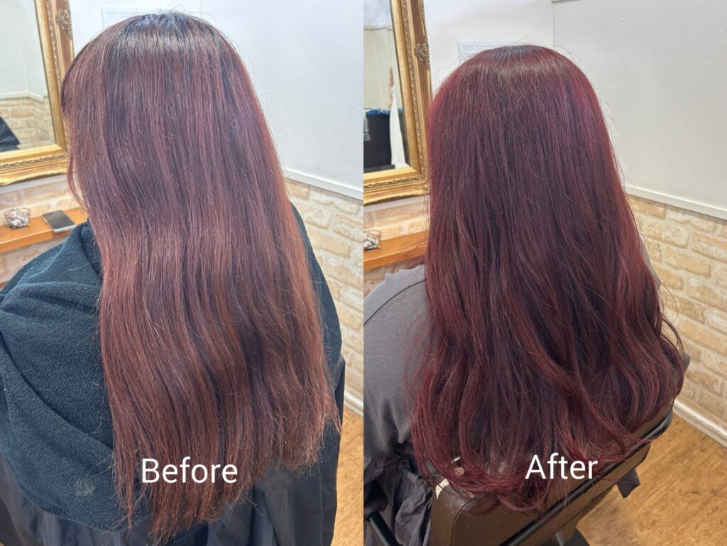 何度か赤み系カラーを続けているお客様なので、