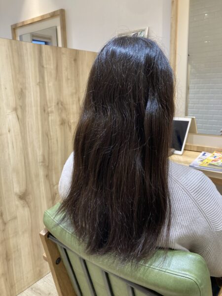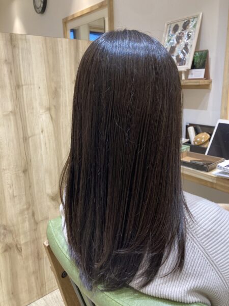 髪質にあった薬剤でストンとした直線的なストレートにしすぎず、やわらかさも残した艶やかな印象のストレートに大変身です