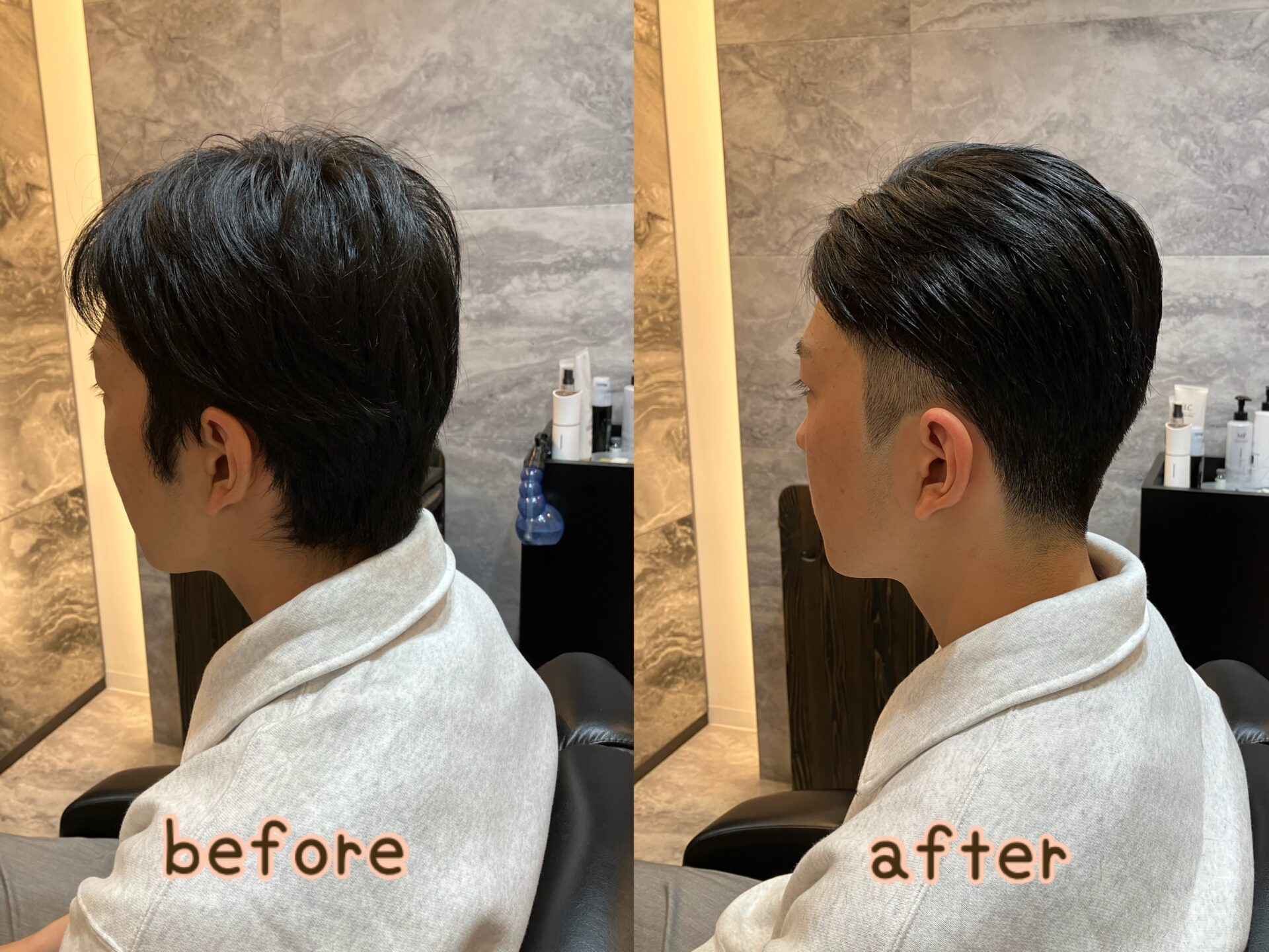 サイドにツーブロックを入れて、トップは整える程度にメンテナンスカットをしました。