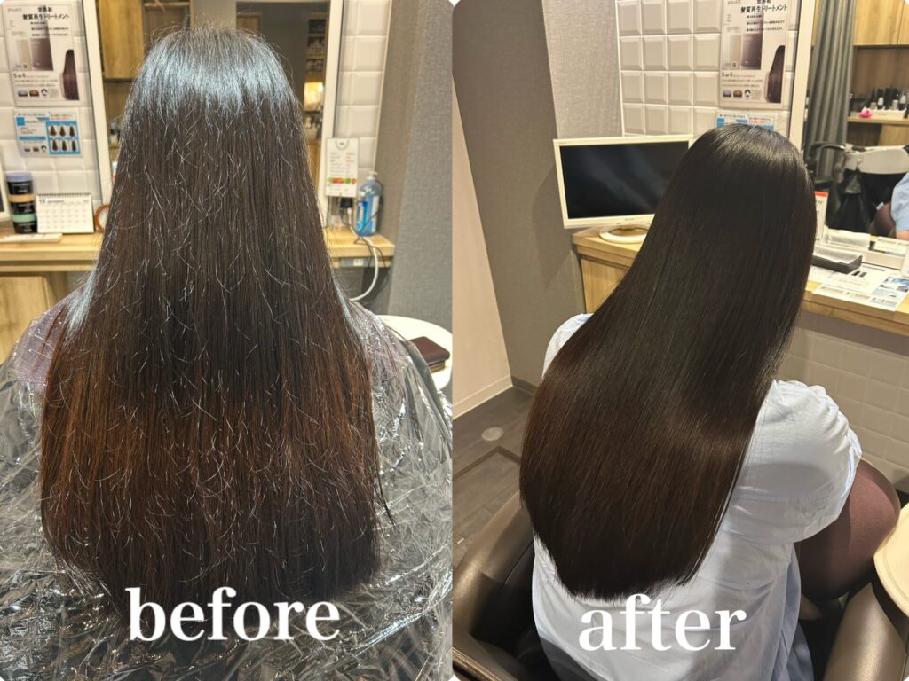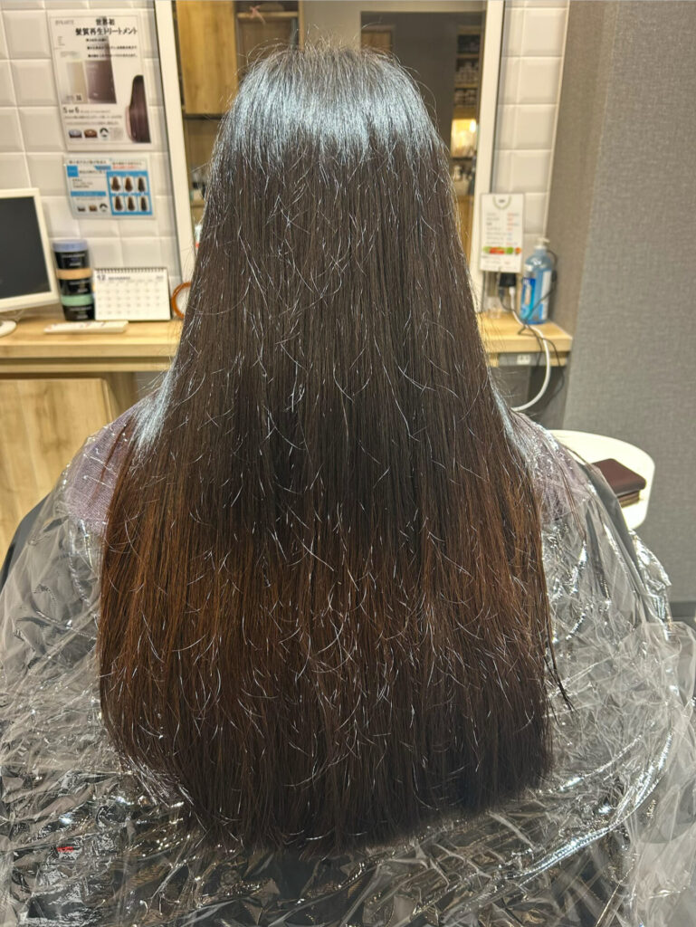 本日のお客様は、ぱっと見ストレートだけどツヤツヤに見えない。カラーもしていないのでダメージもあまりないのに…とお悩みでした。