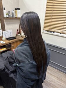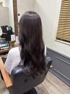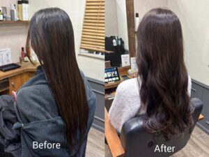 最近は髪を巻く事が増えたという事で、長さも重要ですがある程度重さがある方がお客様の理想のスタイリングに近づけるために毛先をカットさせていただきました。