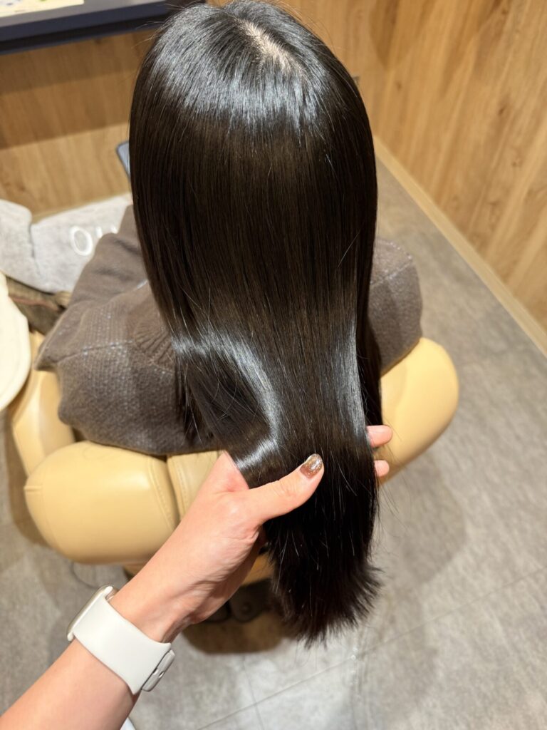 カミケンの縮毛矯正はトリートメントと一緒に施術していくので自然な柔らかさと艶がでておすすめです!