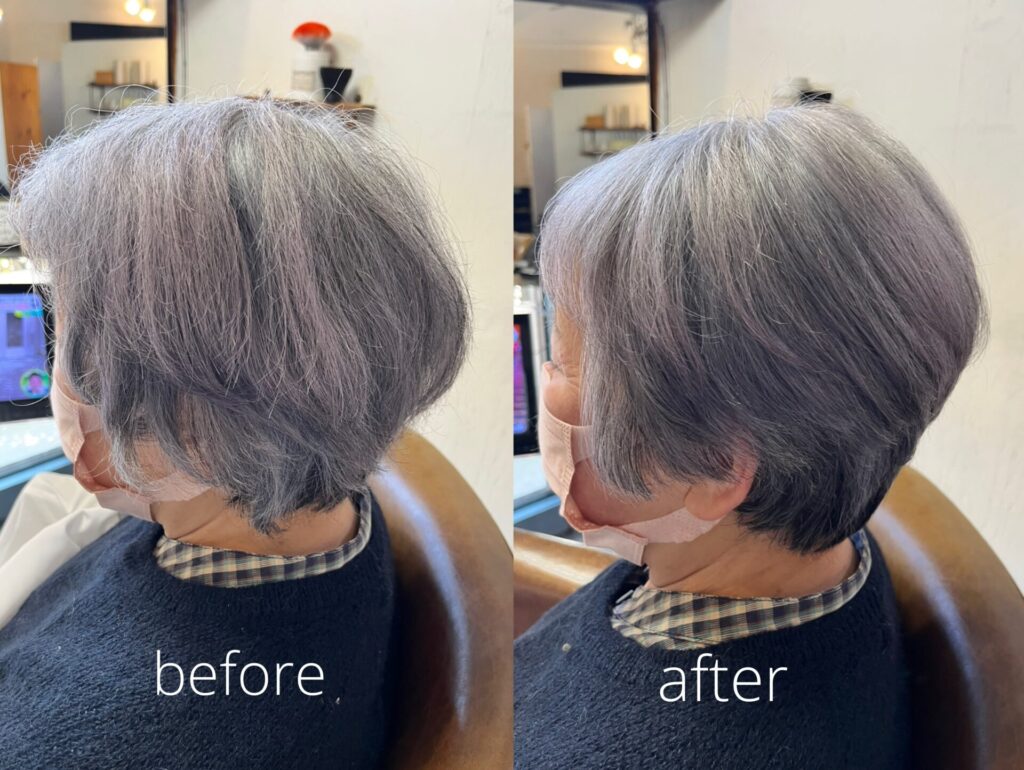 えり足の生えぐせや、全体の毛流れをみながら微調節することにより、扱いやすくなりました。