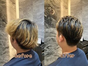 今回はブリーチ毛をカットし、カラーはしないで黒髪に戻していきたいお客様を
