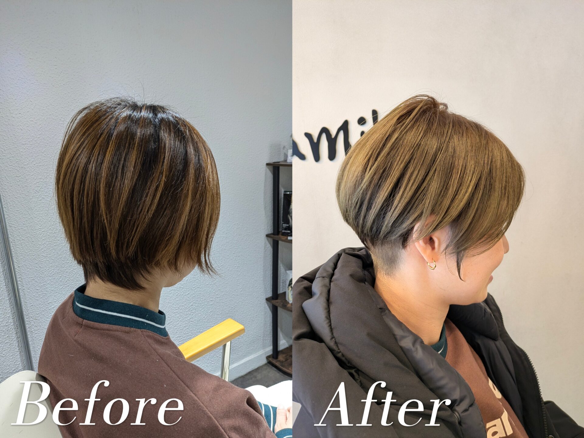 TOP > 施術事例 > 女子にもオススメ♪刈り上げショート♪