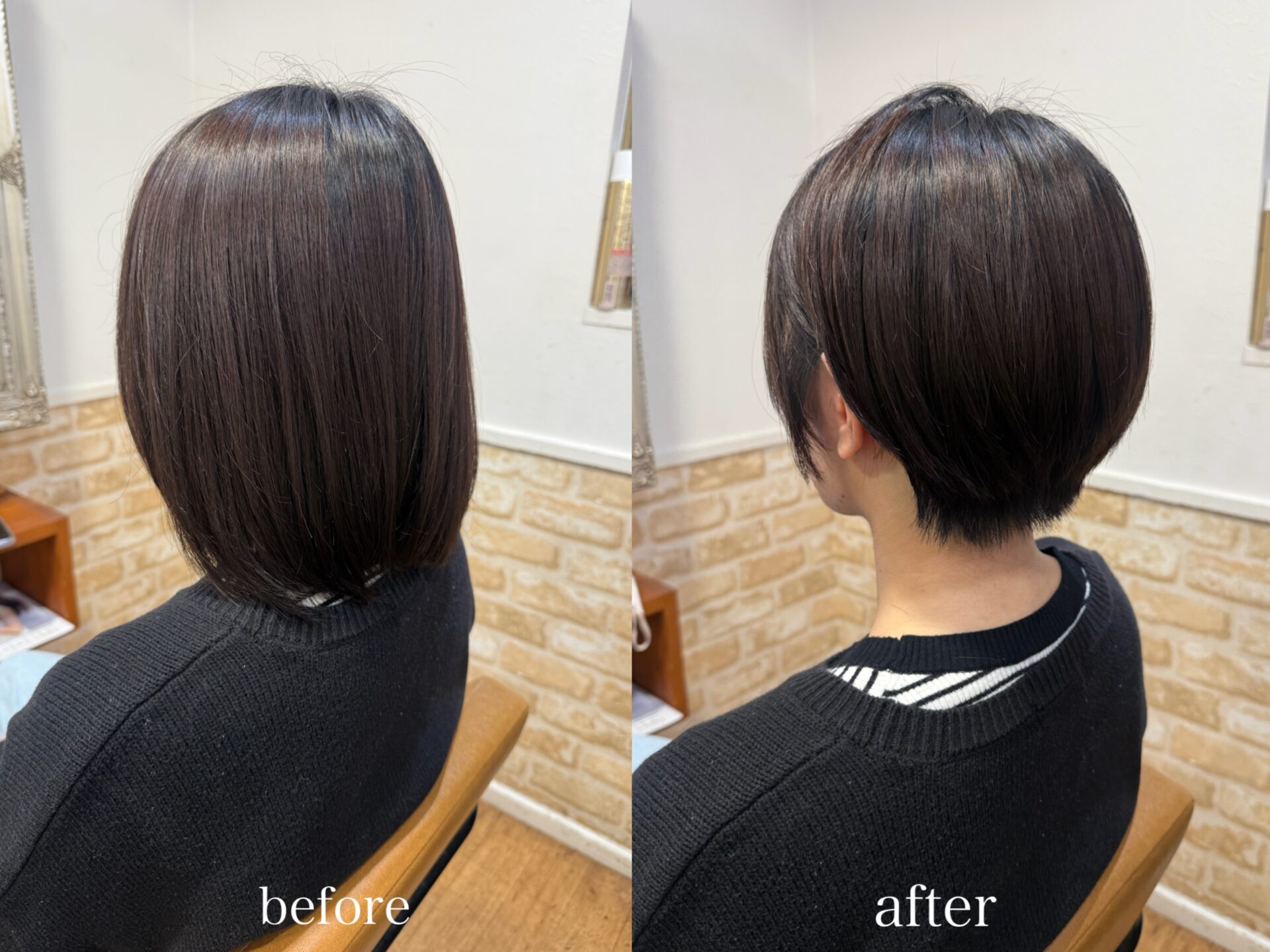 顔まわりは流れるレイヤー、後ろは丸みのあるスタイルで今回は女性らしい柔らかショートに!