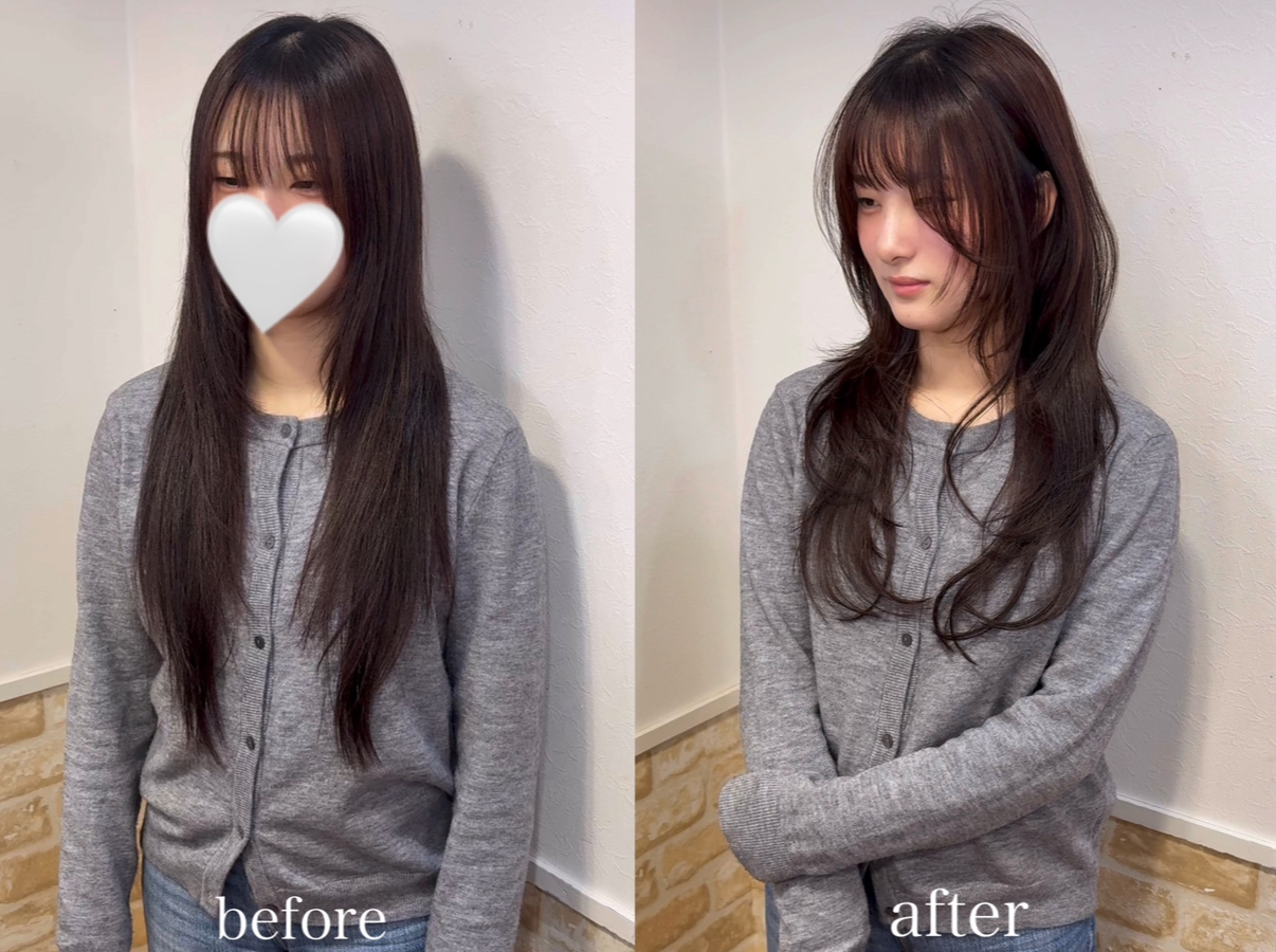 前回は軽めのレイヤーだったので今回は毛量はあまり変えず少し重さがあるようなレイヤーカットで秋冬にぴったりのスタイルになっています!