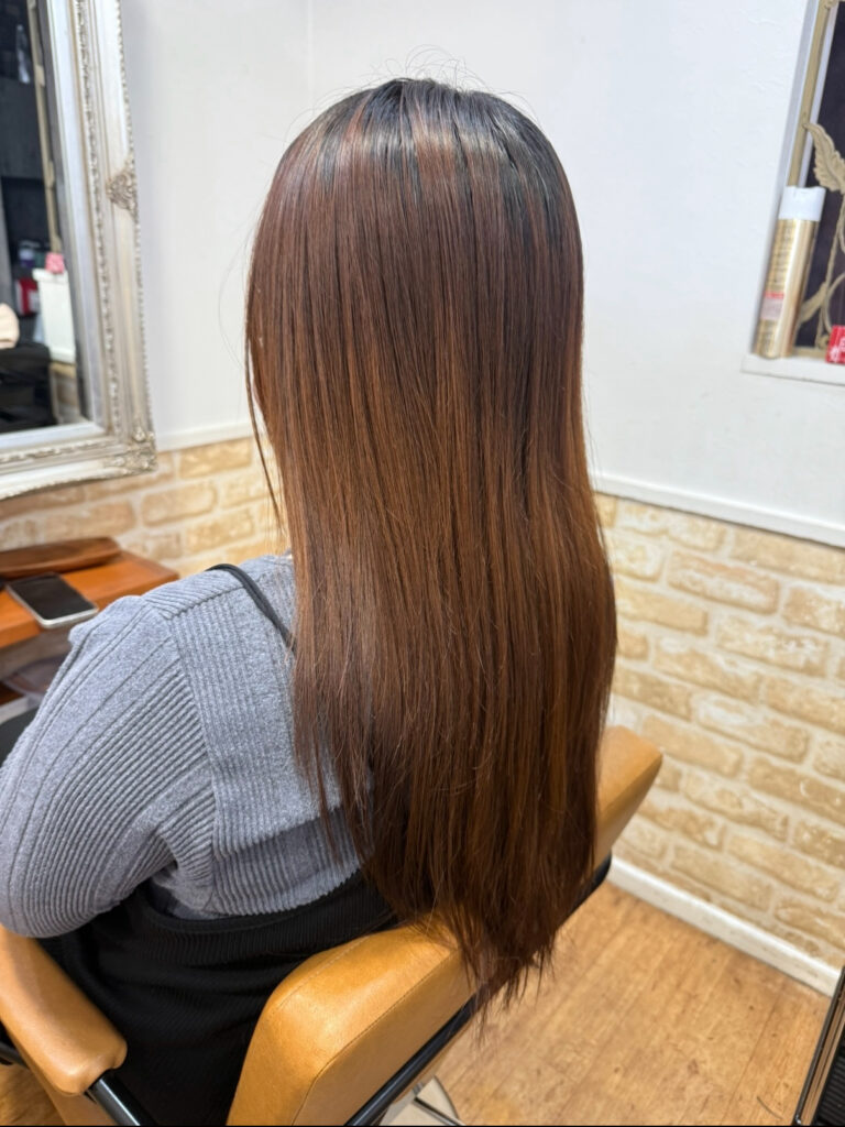 ブリーチ無しでも入りやすいようにベースの明るさを整えているので、色味がブリーチ無しでも濃く入るようになっています!
