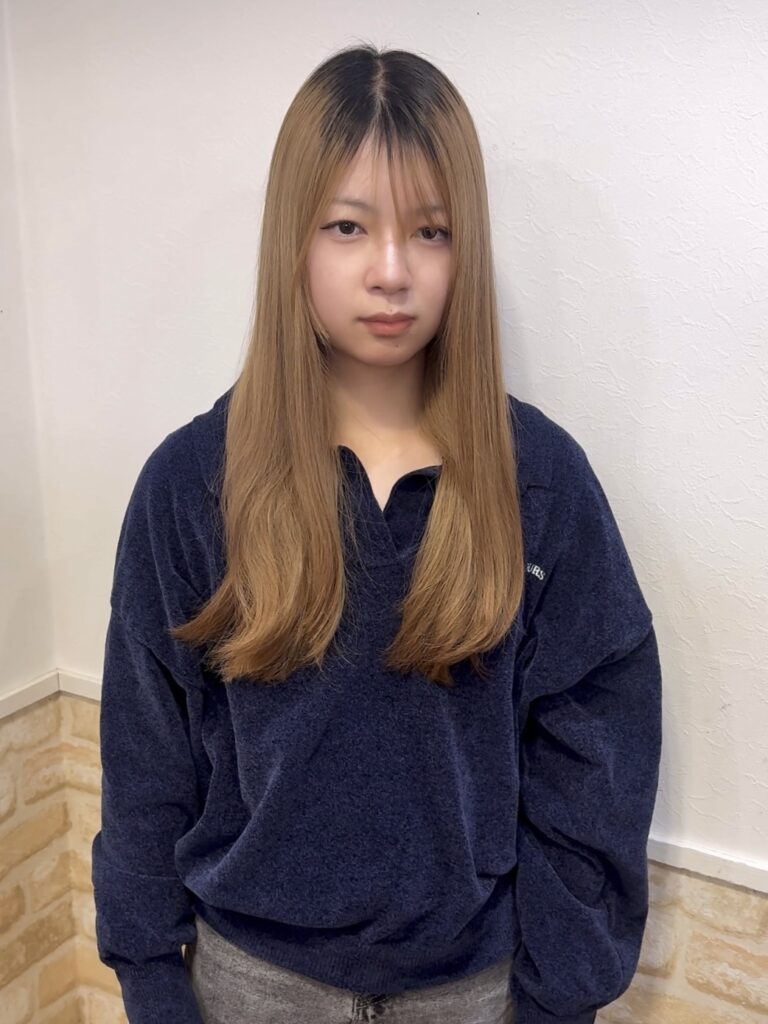 今回はもう1ブリーチしてして透明感あるミルクティーグレージュに