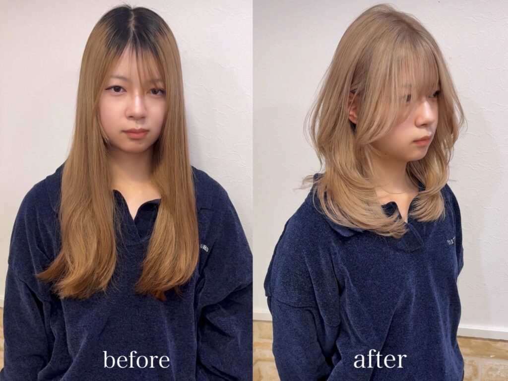 TOP > 施術事例 > 2回ブリーチで作るミルクティーグレージュ