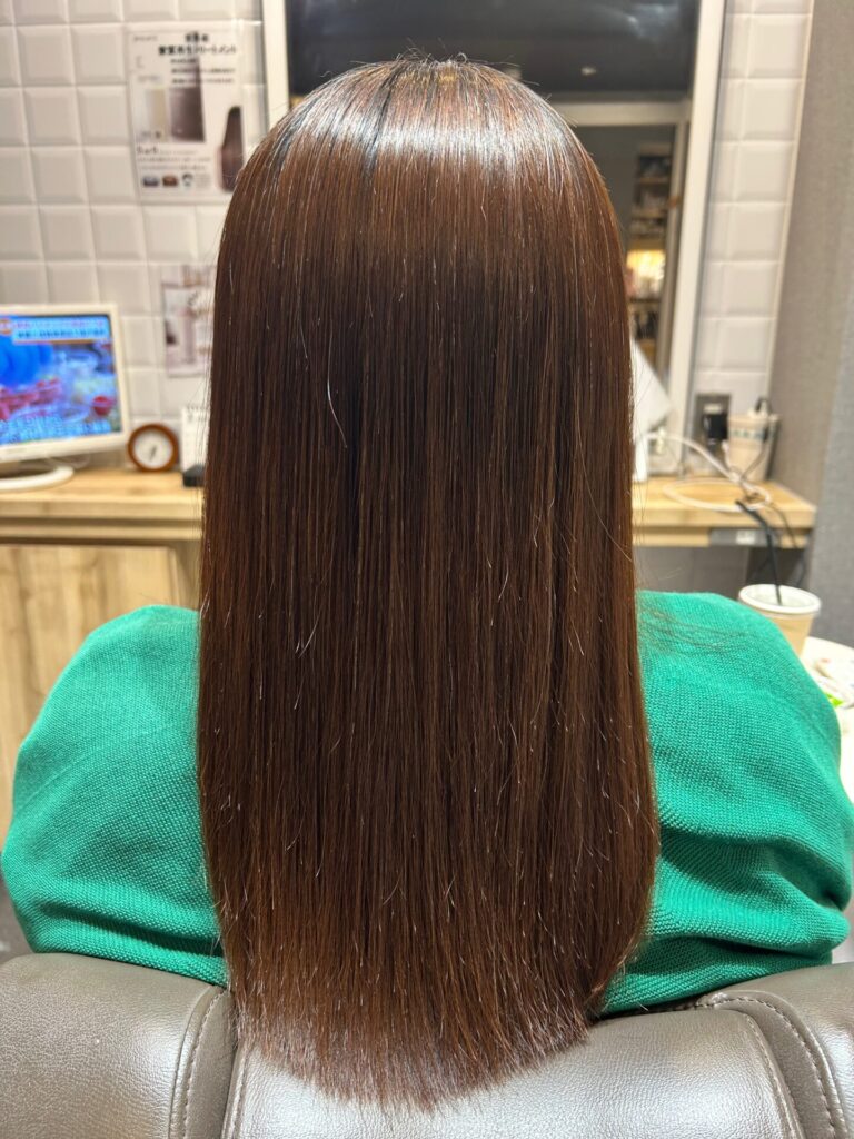 1度かけた所はトリートメントでケアしたので、毛先までツヤツヤに仕上がりました。