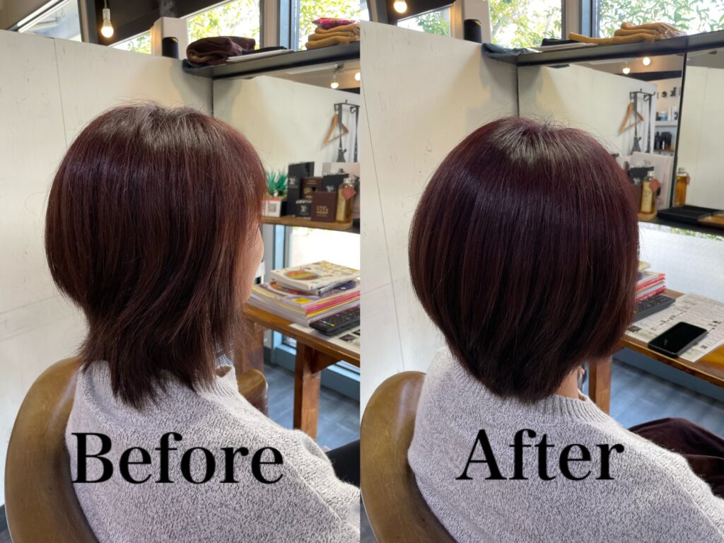 一度白髪をしっかりと染めてあげる事で色もちも良くなります。