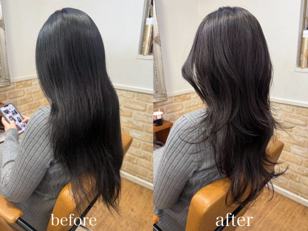 TOP > 施術事例 > 黒髪もレイヤーを入れて抜け感あるスタイルに