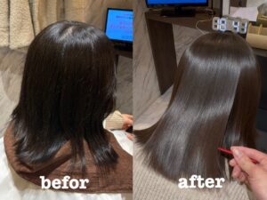 今回ご紹介するのは、縮毛矯正のお客様のビフォーアフターです。