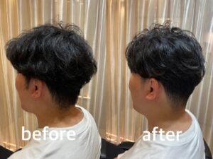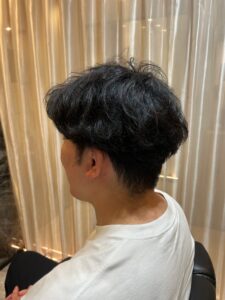 スッキリした刈り上げと、動きを消さない量感調整で毛流れとハネ感を出しました。普段のスタイリングに合わせてオイルで流れと質感を調整して完成です!これからもお客様の快適なスタイリングのお手伝いができるよう努力していきます。次回の来店を心よりお待ちしております!