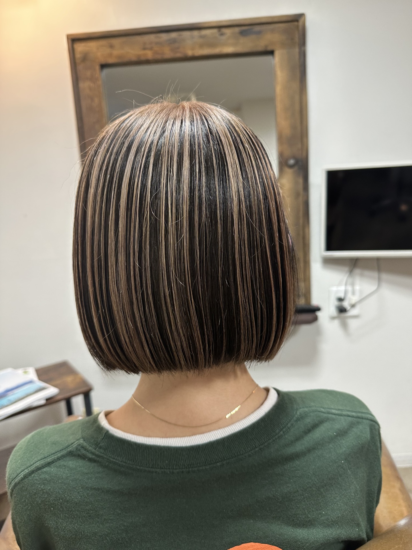 カットはボブは変えずに前回よりも少し短めにカットしスッキリさせていただきました。
