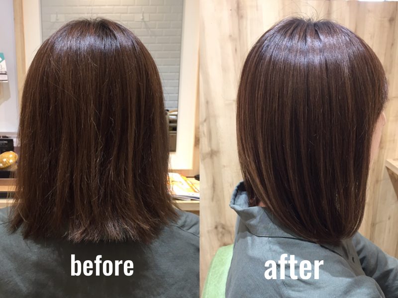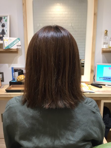 髪の広がりがなかったかのようなサラっとなめらかな手触りに仕上がりに。